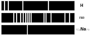 Версия для печати и копирования в MS WordНа рисунках приведены спектры излучения атомарных паров водорода, неизвестного газа и натрия (см. рис.).