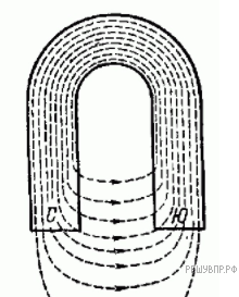 Подковообразный магнит создаёт вихревое магнитное поле как показано на рисунке: