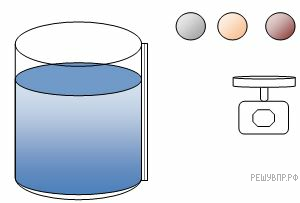 1. Используется установка, изображённая на рисунке: емкость с жидкостью, набор шариков разной плотности, линейка, весы.