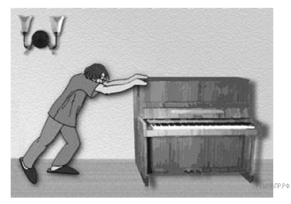 Человек пытается передвинуть пианино вдоль стены. Изобразите на данном рисунке силы, которые действуют на пианино, и направление его ускорения, если инструмент удалось сдвинуть с места.