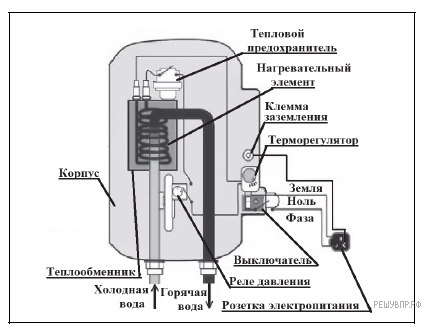 После включения электрического водонагревателя вода, текущая из крана, становится горячей спустя некоторое время. Объясните, почему.