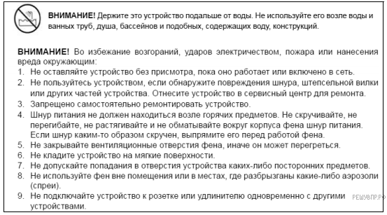 Почему в инструкции запрещается использовать фен возле воды и любых конструкций, содержащих воду?