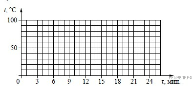 Воду, первоначальная температура которой равна 20 °C, нагревают на 60 °C на плитке неизменной мощности в течение 3 мин. Далее в течение 15 мин. при равномерном отводе тепла воду охлаждают до 20 °C. Постройте график зависимости температуры воды от времени.