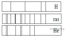 На рисунке приведены фотографии фрагментов спектров поглощения неизвестного газа и паров водорода и гелия.