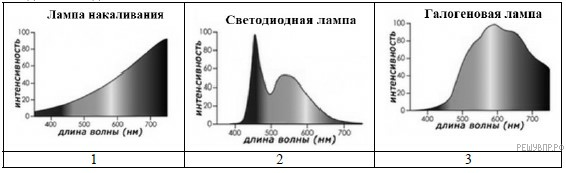 Какую(-ие) из ламп, спектры которых представлены на рисунке, можно использовать для создания холодного света? В ответе укажите номер рисунка, который представляет лампу (-ы).