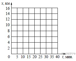 На прямолинейном участке шоссе находятся населённые пункты А, В и С. Координаты пунктов на оси Ох составляют, соответственно, 2 км, 8 км и 13 км. В начальный момент времени из пункта А начинает движение автобус и через 15 мин. доезжает до пункта В. Не останавливаясь в пункте B, ещё через 10 мин. он достигает пункта С. Постройте график зависимости координаты автобуса от времени на всём пути. Движение между пунктами А и В, а также между пунктами В и С считать равномерным.