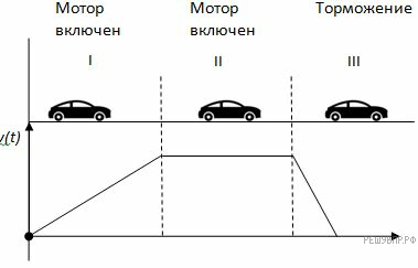 Пользуясь графиком υ(t) и данными рисунка изобразите все силы, действовавшие на машину в промежутке времени I, II и III опишите характер движения машины. Силу трения учитывать.