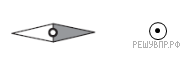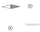 Магнитная стрелка компаса зафиксирована (северный полюс затемнен, см. рис.). К компасу поднесли на равном расстоянии два проводника с одинаковым постоянным электрическим током (проводники расположены перпендикулярно плоскости рисунка), затем освободили стрелку, она повернулась и остановилась в новом положении. Изобразите новое положение стрелки.
