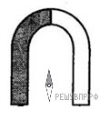 Магнитная стрелка компаса зафиксирована (северный полюс затемнен, см. рис.). К компасу поднесли сильный постоянный подковообразный магнит, затем освободили стрелку, она повернулась и остановилась в новом положении. Изобразите новое положение стрелки.
